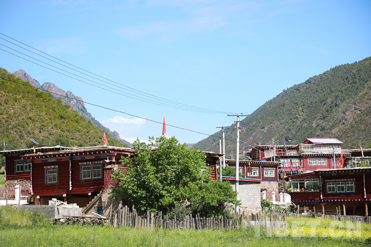 圖為崗?fù)写邋e(cuò)落有致的藏式民居