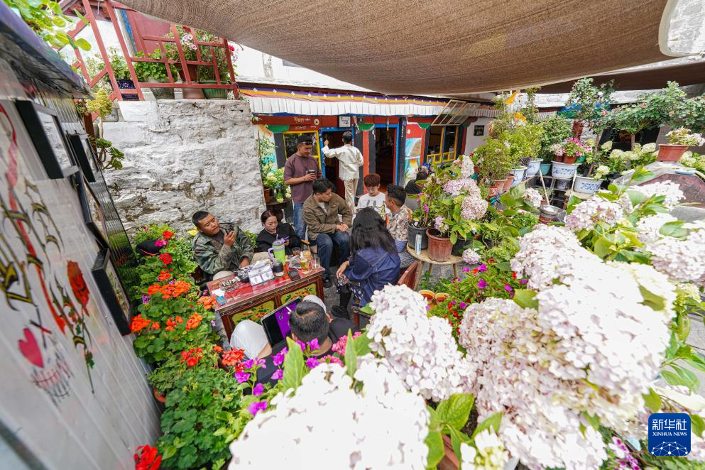 位于拉薩老城區(qū)貢桑孜大院一角的咖啡館(7月5日攝)。新華社記者 晉美多吉 攝