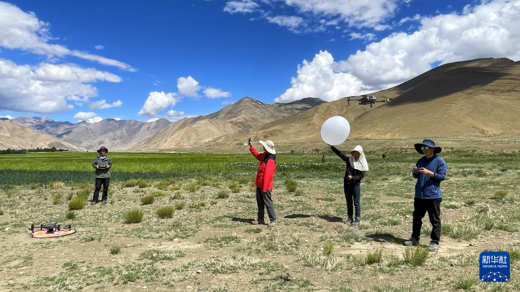 團(tuán)隊(duì)開(kāi)展探空氣球大氣廓線觀測(cè)和無(wú)人機(jī)熱紅外影像獲取。(中國(guó)科學(xué)院空天信息創(chuàng)新研究院供圖)