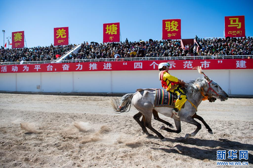 8月11日,騎手在場(chǎng)名馬冠軍比賽中。新華網(wǎng) 旦增努布 攝
