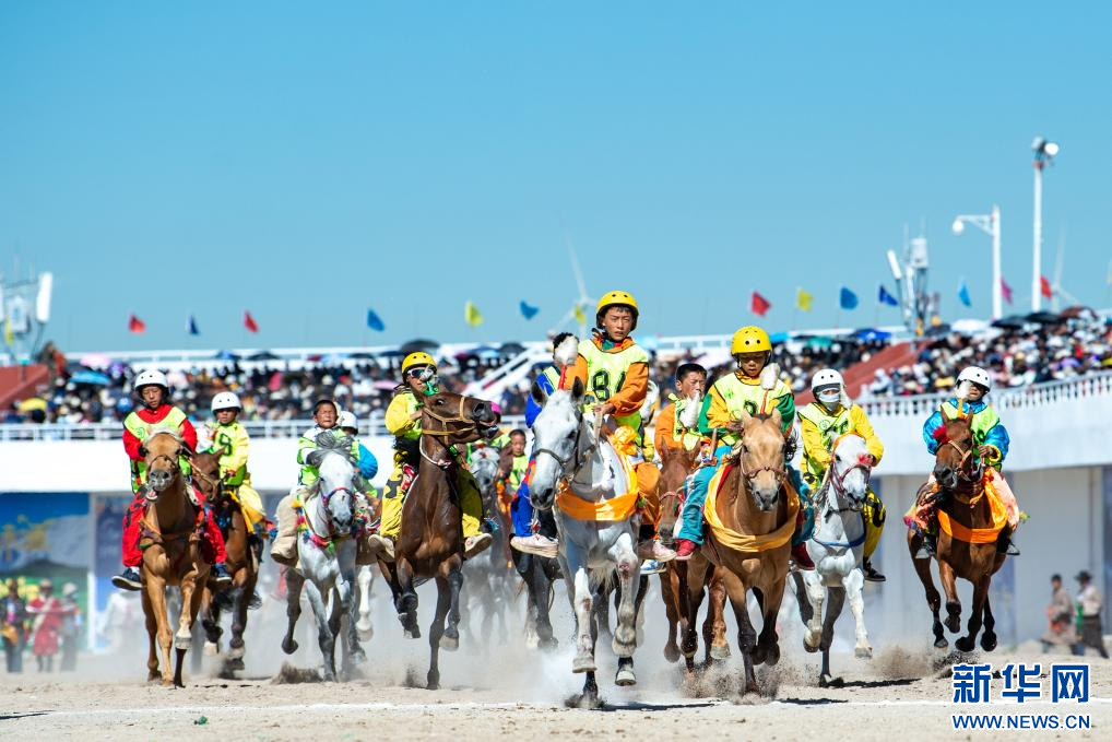 8月12日,騎手在傳統(tǒng)十公里大跑項(xiàng)目中角逐。 新華網(wǎng) 旦增努布 攝