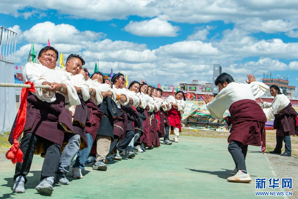 8月11日,拔河比賽現(xiàn)場(chǎng)。新華網(wǎng) 旦增努布 攝