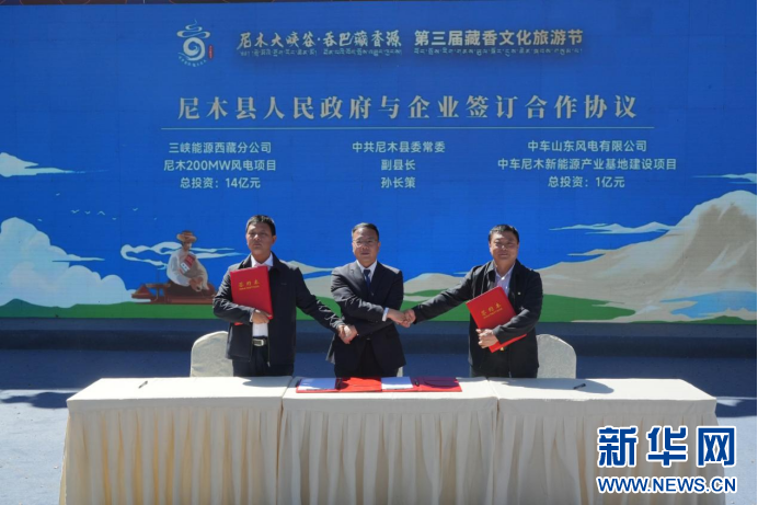 開幕式上,尼木縣委常委、副縣長孫長策與中國三峽新能源集團股份有限公司西藏分公司、中車山東風電有限公司、拉薩明陽新能源有限公司和華電新能源有限公司的代表完成簽約儀式,達成互利共贏的合作關系?! ??