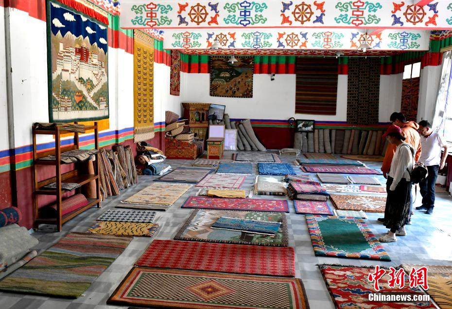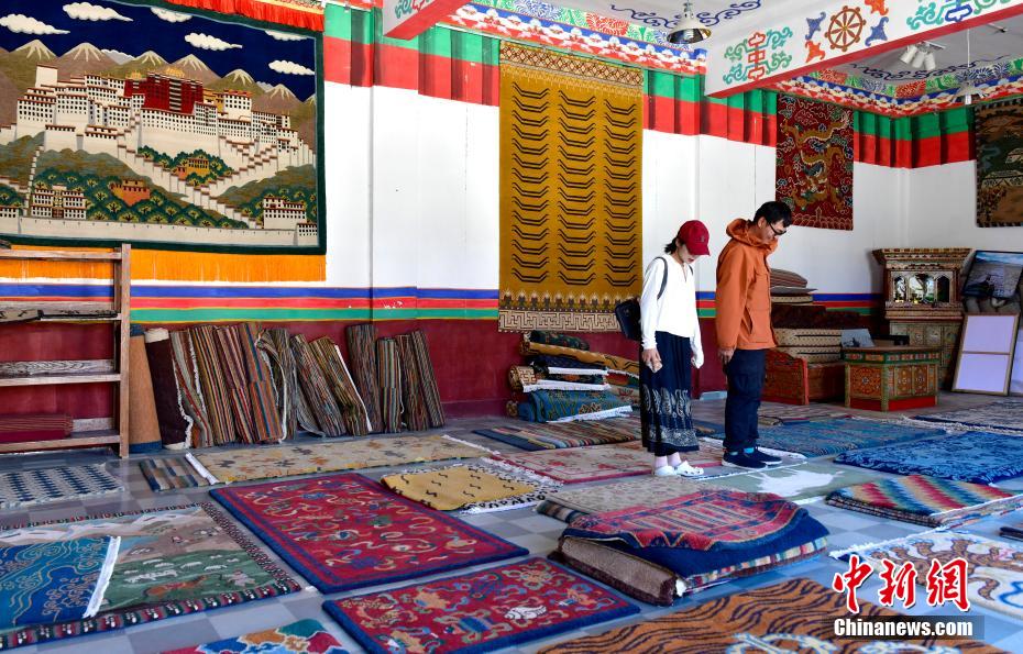 藏毯是世界三大名毯之一,以艷麗的色彩、濃厚的民族風格、鮮明的地域特色聞名遐邇。圖為8月16日,西藏拉薩的一家藏毯廠里,游客選購圖案精美的藏毯。中新社記者 李林 攝