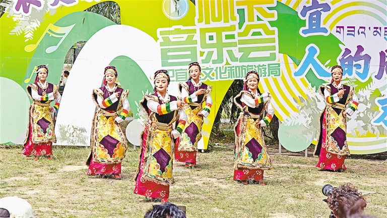 林卡主題音樂會(huì)舞臺(tái)設(shè)立在草坪上,顯得更為溫馨和接地氣,隨著米納羌姆、工布箭歌、工布民歌等非遺表演輪番上演,讓市民、游客在濃郁的文化氛圍里感受傳統(tǒng)民俗文化獨(dú)特魅力和豐富的文化內(nèi)涵。