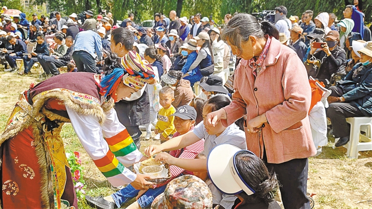 現(xiàn)場(chǎng)設(shè)置了工布藏族服飾比賽、傳統(tǒng)美食體驗(yàn)及農(nóng)特產(chǎn)品試吃、藏骰體驗(yàn)等活動(dòng)。一場(chǎng)別開生面的非遺與美食的碰撞,讓市民、游客盡享“文化大餐”。來自巴宜區(qū)四鎮(zhèn)三鄉(xiāng)的蕎麥餅、酸奶醬、藏香豬、藍(lán)莓、玫瑰茶等出現(xiàn)在傳統(tǒng)美食體驗(yàn)及農(nóng)特產(chǎn)品試吃活動(dòng)中,吸引不少市民、游客駐足品嘗,近距離享受著非遺帶來的韻味與魅力。