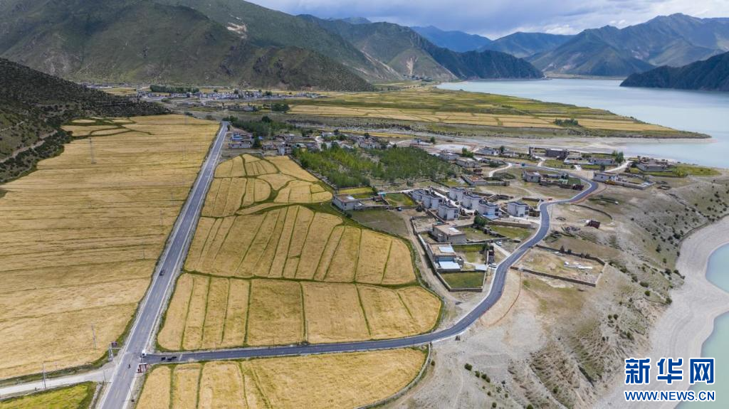 9月4日, 宜居宜業(yè)和美鄉(xiāng)村建設(shè)項(xiàng)目實(shí)施后的墨竹工卡縣尼瑪江熱鄉(xiāng)幫達(dá)村面貌 ( 無(wú)人機(jī)照片 )。 新華網(wǎng)發(fā) 洛克 攝
