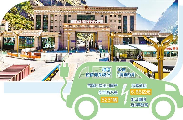 在位于日喀則市的吉隆口岸,裝載著一輛輛國產(chǎn)新能源汽車的大卡車正緩緩駛出國門,駛向尼泊爾。今年以來,新能源汽車出口形勢良好,貿(mào)易值屢創(chuàng)新高,成為西藏外貿(mào)新的增長點。根據(jù)拉薩海關(guān)統(tǒng)計,今年1月至9月,吉隆口岸出口國產(chǎn)新能源汽車5231輛,貿(mào)易值達(dá)6.66億元,出口量創(chuàng)近3年新高。