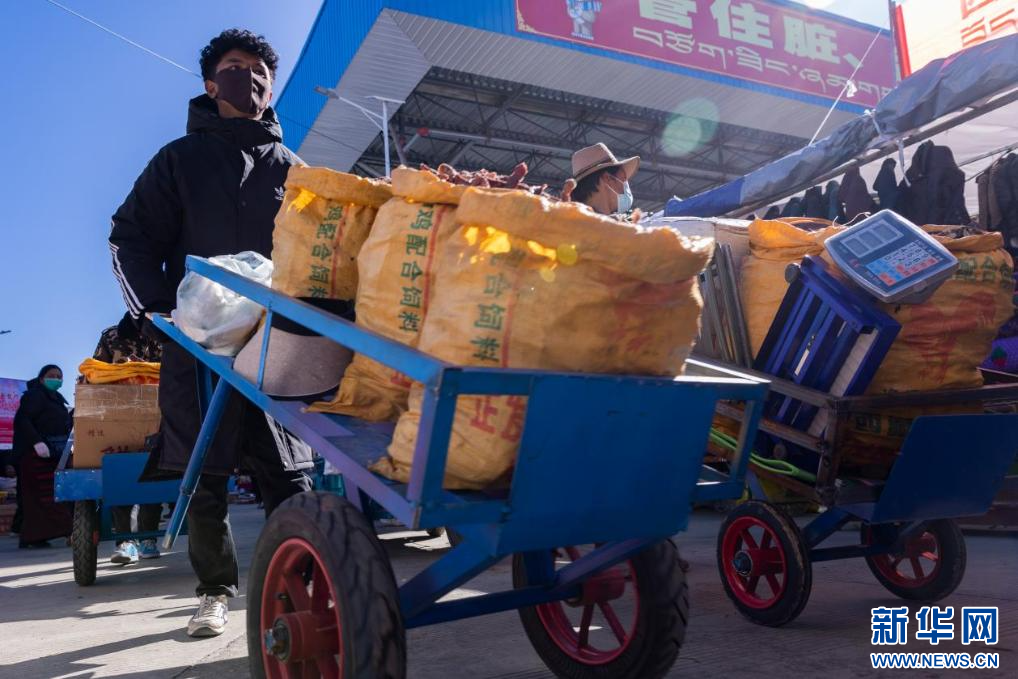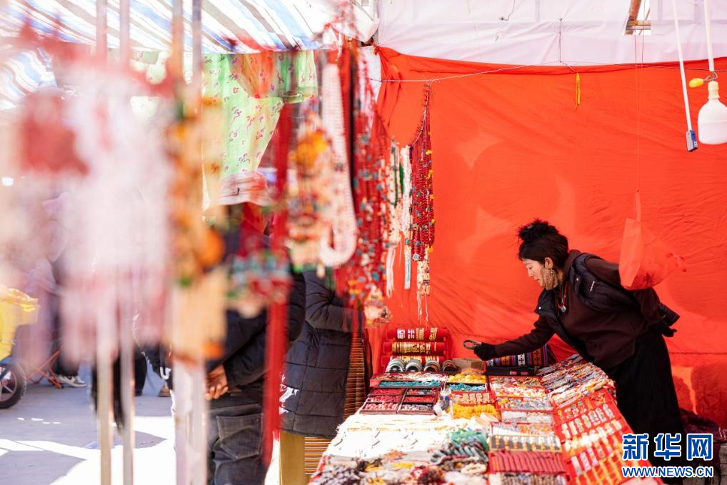 在現(xiàn)場,人來人往,商品琳瑯滿目。扎念琴聲、推車聲、嬉笑聲此起彼伏,一派熱鬧繁忙的景象。