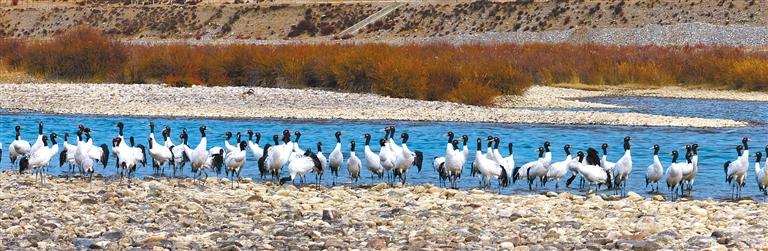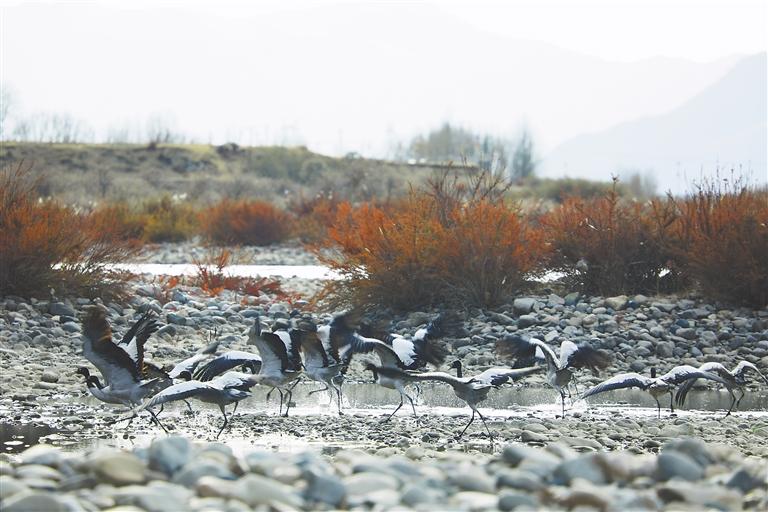 本版圖片均為黑頸鶴在墨竹工卡境內(nèi)棲息的場(chǎng)景。
