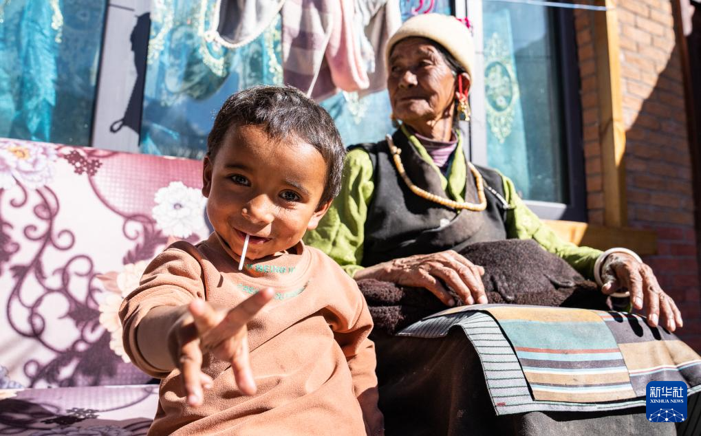12月15日,達(dá)曼新村的孩子和老人在曬太陽(yáng)。新華社記者 丁增尼達(dá) 攝