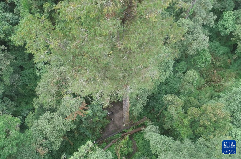 這是12月21日拍攝的西藏墨脫縣的一棵高達(dá)76.8米的大樹(無人機(jī)照片)。新華社記者 丁汀 攝