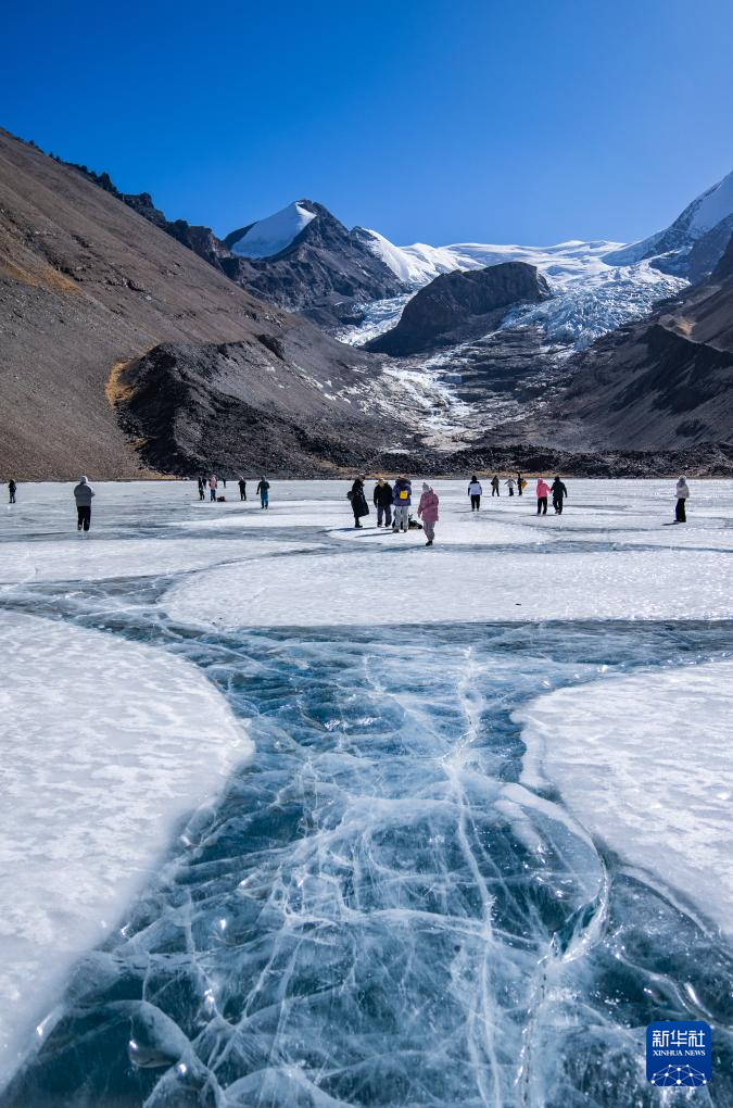 游客在恰央錯結(jié)冰的湖面上游玩(1月26日攝)。新華社記者 丁增尼達(dá) 攝 ??