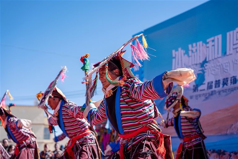 活動(dòng)在浪卡子縣打隆鎮(zhèn)推瓦村舉辦。普莫雍錯(cuò)冬季封凍后,會(huì)形成如夢(mèng)如幻的幽藍(lán)冰面,因此被贊譽(yù)為“中國貝加爾湖”。每年2月前后,當(dāng)湖面完全冰封,推瓦村村民便會(huì)集結(jié)羊群,趕著它們踏上冰面,前往湖心島過冬,這一延續(xù)千年的冰上趕羊傳統(tǒng),承載著深厚的歷史文化底蘊(yùn)。