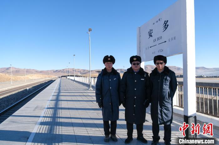 2月3日,青藏鐵路西藏那曲安多站的三位職工,從左至右分別為權京波、安海平和彭敏。中新社記者 江飛波 攝
