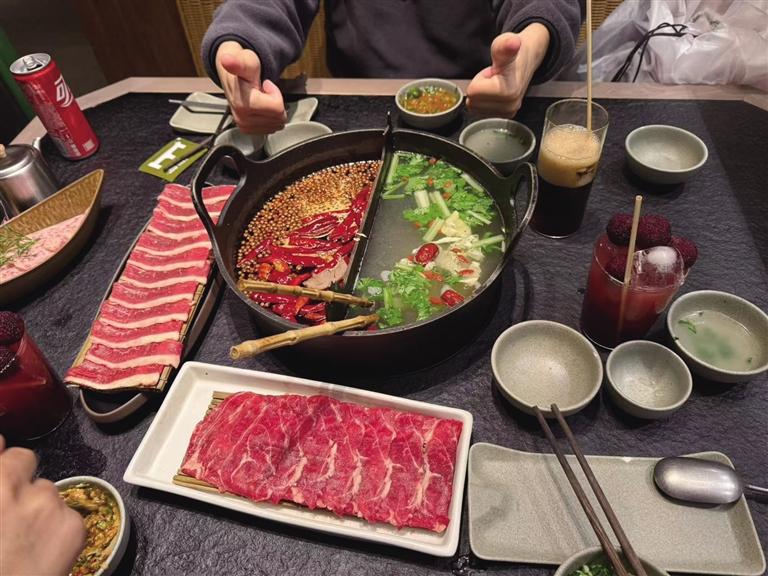 市民普布倉(cāng)決趁著假期回家,想好好招待親朋好友,思來(lái)想去,火鍋店成了她的首選。普布倉(cāng)決打聽(tīng)了多家人氣火爆的火鍋店鋪后得知,不少店鋪在春節(jié)期間都推出了新春活動(dòng)和新菜品。于是,她預(yù)訂了一間包廂,和親朋們一同享用火鍋。她笑著說(shuō):“春節(jié)期間,我連續(xù)參加了3場(chǎng)‘火鍋局’。我覺(jué)得火鍋可不只是滿足味蕾,更是親朋好友之間情感交流和社交互動(dòng)的好方式?!?/p>