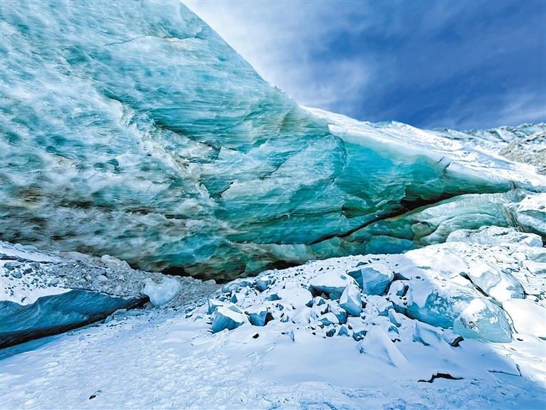 近日,昌都市邊壩縣邊壩鎮(zhèn)普玉一村發(fā)現(xiàn)一處大型冰洞,當(dāng)?shù)厝罕姺Q其為“普玉冰洞”,藏語意為“最深處的冰洞”。冰洞呈優(yōu)美的弧形結(jié)構(gòu),自然形成,在陽光的照射下,冰壁晶瑩剔透,十分壯美?! ?/p>