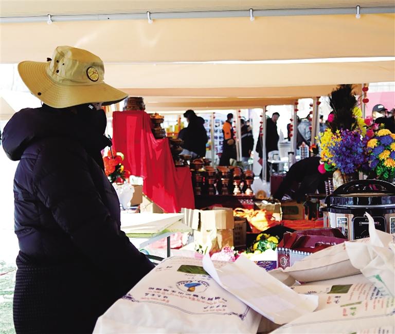 走進(jìn)體育場(chǎng),首先映入眼簾的是巨型藏式切瑪五彩蛇形龍門架,其色彩絢麗、造型別致,承載著藏族人民對(duì)新年的美好祈愿。由五彩蛇形帳篷搭建的300個(gè)展位整齊排列,展位上擺滿了琳瑯滿目的商品。五彩麥穗在微風(fēng)中輕輕擺動(dòng),各類奶制品散發(fā)著誘人的奶香,還有各式各樣的藏式年貨、傳統(tǒng)手工藝品、農(nóng)副產(chǎn)品以及現(xiàn)代科技產(chǎn)品,令人目不暇接。