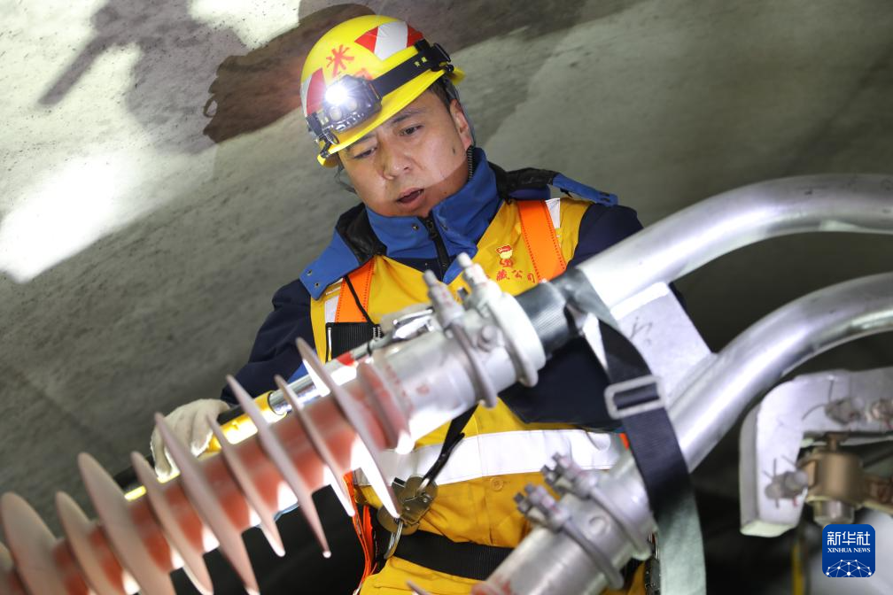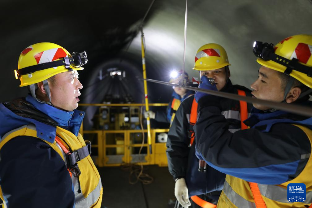 18日,在拉林鐵路色拉丘隧道內(nèi),拉薩基礎(chǔ)設(shè)施段林芝綜合維修車(chē)間的接觸網(wǎng)軌道作業(yè)車(chē)緩緩前行。5米高的作業(yè)平臺(tái)上,接觸網(wǎng)工人劉海軍手持工具,專(zhuān)注地為接觸網(wǎng)更換絕緣子,工具在接觸網(wǎng)設(shè)備間靈活穿梭。