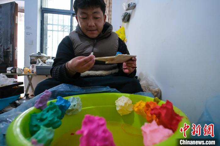 “我大概從初中一年級開始,每年藏歷新年前都和父親來拉薩捏酥油花,除了種地和打工,酥油花是我們家的主要收入來源?!?月20日,在拉薩市城關(guān)區(qū)吉崩崗街道一出租房內(nèi),24歲的大學(xué)生扎西歐珠對中新社記者講述寒假捏制酥油花的經(jīng)歷。